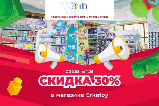 В честь детского праздника Дня защиты детей сеть магазинов игрушек и детских товаров Erkatoy запускает акцию. Только с 30.05 по 1.06 в сети Erkatoy будет действовать скидка 30% на игрушки, а также 20% – на продукцию итальянского бренда Chicco.