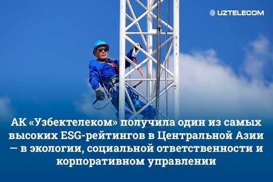 Sustainable Fitch (Барселона) присвоило АК «Узбектелеком» ESG-рейтинг с совокупным баллом 73, что является самой высокой оценкой в Центральной Азии. Это отражает в целом положительную оценку деятельности АК «Узбектелеком» с точки зрения экологических и социальных факторов, а также его отличного профиля корпоративного управления.