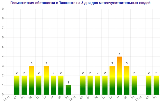 Завтра (17 декабря) в Ташкенте будет наблюдаться магнитная буря мощностью четыре балла, следует из данных сервиса Meteonova.