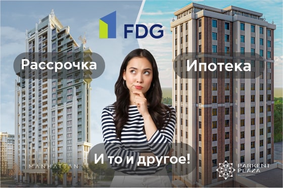 На настоящий момент в FDG действуют 10% скидка в ЖК Manhattan и 8% скидка в ЖК Parkent Plaza при условии 100% оплаты.