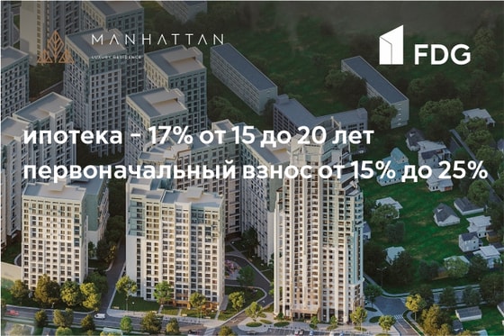 В ЖК Manhattan – ипотека на 15 лет с процентной ставкой 17% годовых с первоначальным взносом 25%. При этом сумма кредита не ограничена.