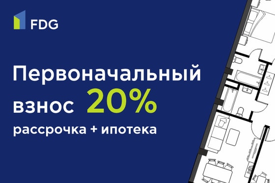 Также команда FDG запустила программу приобретения квартиры в рассрочку с переходом на ипотеку. Для того, чтобы воспользоваться данной программой, нужно внести всего 20% первоначального взноса.