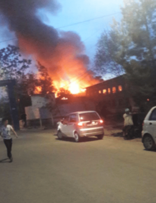 В Алмазарском районе Ташкента (Каракамыш 1/2) по улице Гулсарой крупный пожар. По предварительной информации, горит производственный цех, выпускающий провода и гвозди. В настоящий момент пожар удалось частично потушить, однако клубы дума ухудшили видимость в радиусе нескольких сотен метров. На месте пожара работают несколько пожарных расчетов, а также дежурят автомобили скорой помощи. Информация о пострадавших не поступала. На момент написания данной новости пожар ещё не был потушен, передает корреспондент Repost.