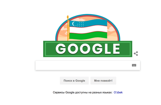 Официальная страница поисковика Google.com на один день сменила дизайн в честь Дня Независимости Республики Узбекистан. Праздничный дудл стал доступен на главной странице поисковой системы ровно в 00:00 и продержится на ней в течение суток. Он представлен развевающимся флагом Узбекистана.