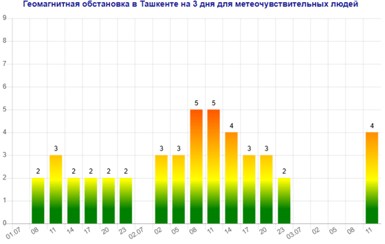 Завтра (2 июля) в Ташкенте ожидается магнитная буря мощностью пять баллов, следует из данных сервиса Meteonova.