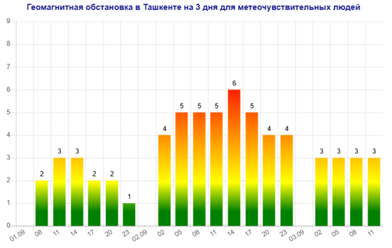 Завтра (2 сентября) в Ташкенте ожидается магнитная буря мощностью шесть баллов, следует из данных сервиса Meteonova.