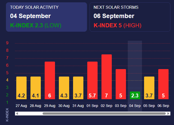 Послезавтра (6 сентября) на Земле будет наблюдаться «красная» магнитная буря, сообщает Meteoagent.