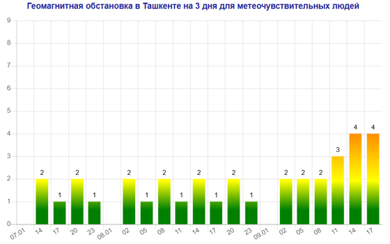 В Ташкенте прогнозируется мощная магнитная буря, следует из данных сервиса Meteonova.