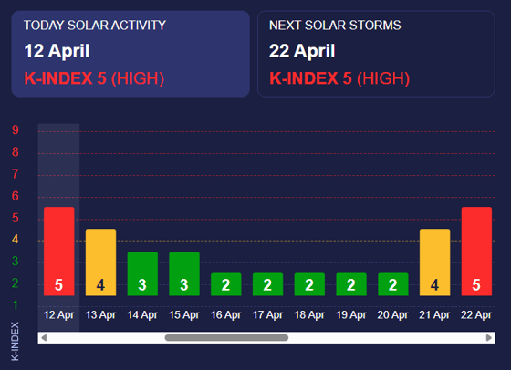 На Земле наблюдается магнитная буря «красного» уровня (K-индекс 5), сообщает Meteoagent.