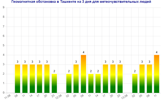 Завтра (12 августа) в Ташкенте ожидается магнитная буря мощностью четыре балла, следует из данных сервиса Meteonova.