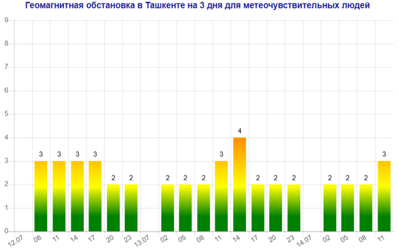 Завтра (13 июля) в Ташкенте будет наблюдаться магнитная буря мощностью четыре балла, следует из данных сервиса Meteonova.