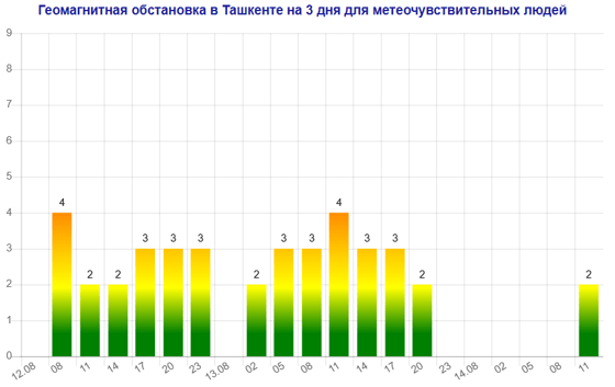 Завтра (13 августа) в Ташкенте ожидается магнитная буря мощностью четыре балла, следует из данных сервиса Meteonova.