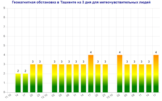 В Ташкенте ожидается магнитная буря мощностью четыре балла, следует из данных сервиса Meteonova.
