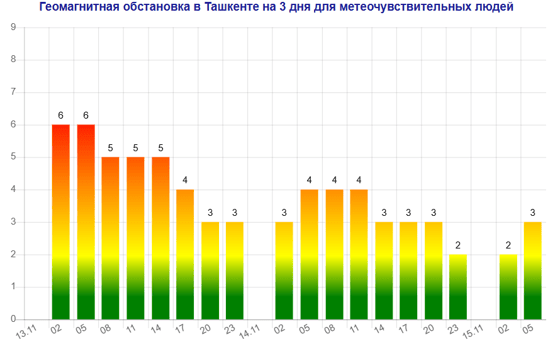 В Ташкенте наблюдается мощная магнитная буря, следует из данных сервиса Meteonova.