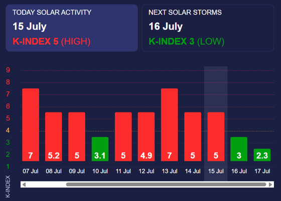 Сегодня (15 июля) на Земле наблюдается «красная» магнитная буря, сообщает Meteoagent.