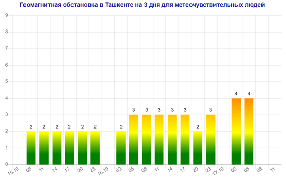 В Ташкенте ожидается магнитная буря мощностью четыре балла, следует из данных сервиса Meteonova.