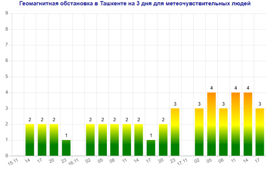 В Ташкенте ожидается мощная магнитная буря, следует из данных сервиса Meteonova.