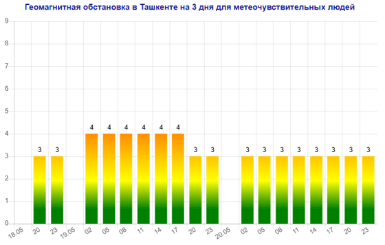 Сегодня (19 мая) в Ташкенте ожидается магнитная буря мощностью четыре балла, следует из данных сервиса Meteonova.