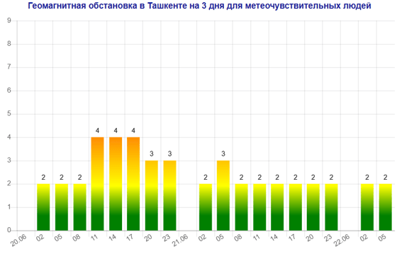 Сегодня (20 июня) в Ташкенте ожидается магнитная буря мощностью четыре балла, следует из данных сервиса Meteonova.