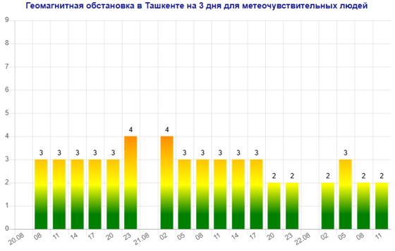 Сегодня (20 августа) в Ташкенте ожидается магнитная буря мощностью четыре балла, следует из данных сервиса Meteonova.