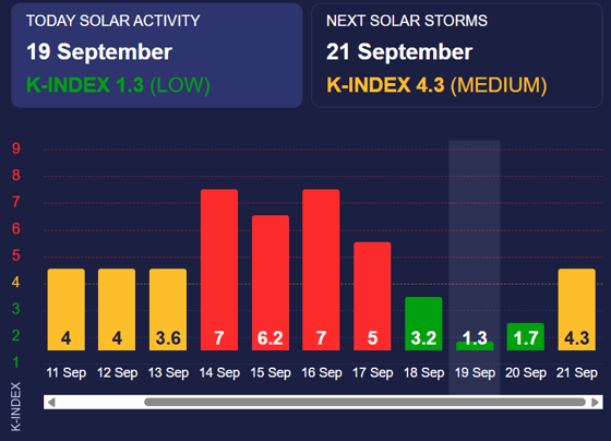 В воскресенье (21 сентября) на Земле будет наблюдаться магнитная буря «желтого» уровня, следует из данных Meteoagent.
