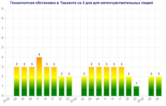 В Ташкенте наблюдается мощная магнитная буря, следует из данных сервиса Meteonova.
