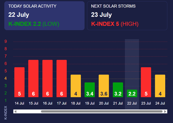 Завтра (23 июля) на Земле будет наблюдаться «красная» магнитная буря, сообщает Meteoagent.