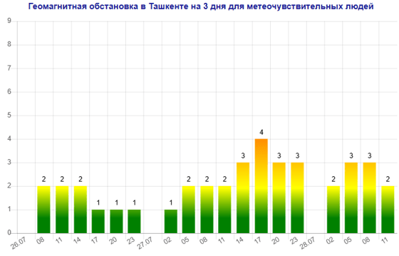 Завтра (27 июля) в Ташкенте будет наблюдаться магнитная буря мощностью четыре балла, следует из данных сервиса Meteonova.