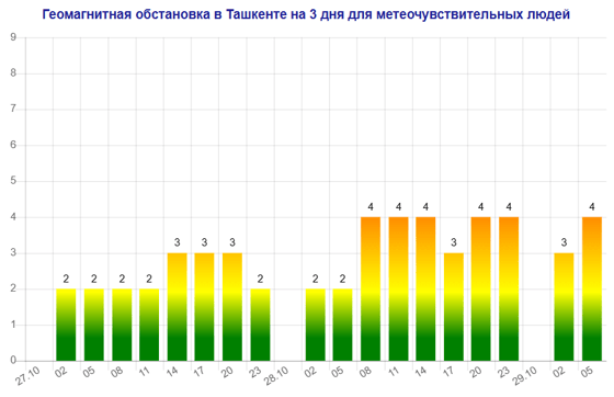 В Ташкенте ожидается магнитная буря мощностью четыре балла, следует из данных сервиса Meteonova.