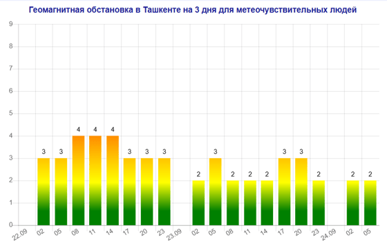 Сегодня (22 сентября) в Ташкенте наблюдается мощная магнитная буря, следует из данных сервиса Meteonova.
