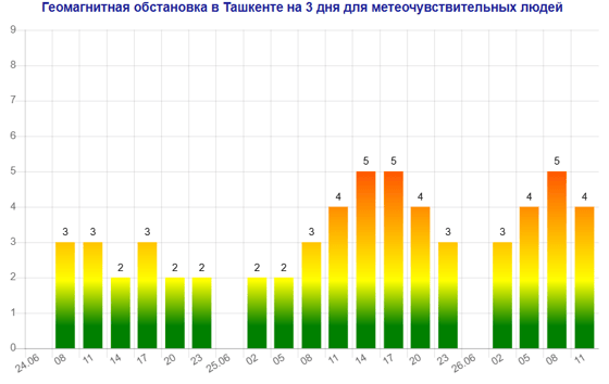 Завтра (25 июня) в Ташкенте ожидается магнитная буря мощностью пять баллов, следует из данных сервиса Meteonova.