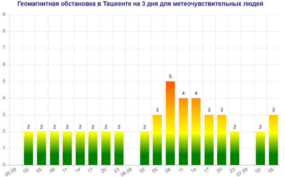 Завтра (6 сентября) в Ташкенте ожидается магнитная буря мощностью пять баллов, следует из данных сервиса Meteonova.