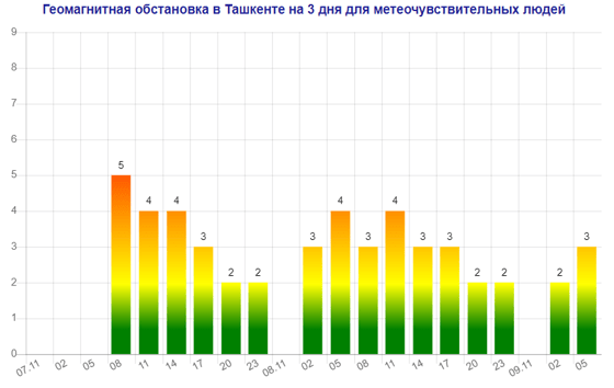 Сегодня (7 ноября) в Ташкенте наблюдается магнитная буря мощностью четыре балла, следует из данных сервиса Meteonova.
