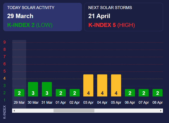В апреле на Землю обрушится магнитная буря желтого уровня (K-индекс 4), сообщает Meteoagent.