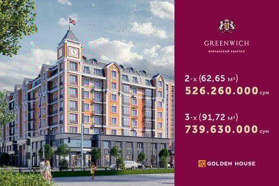 Стоимость квартир в Британском квартале Greenwich в Мирабадском районе, который имеет уникальную стилистику и дизайн: