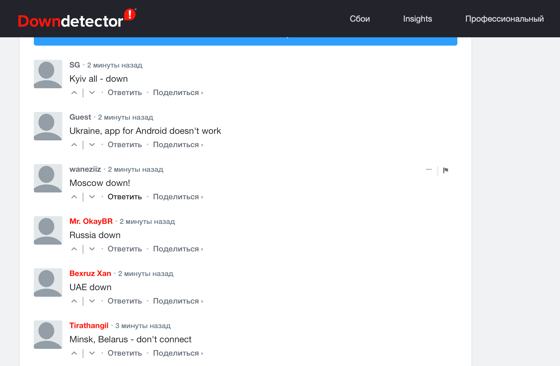 Проблемы возникли у пользователей из России, Украины, Беларуси, Узбекистана и ОАЭ.