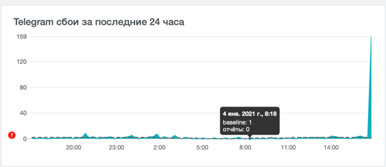 4 января пользователи пожаловались на сбои в работе Telegram. 82% пользователей жалуются на проблемы с подключением, 17% — с отправкой сообщений.