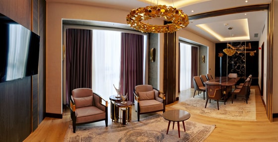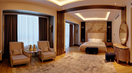Убранство номеров, холлов, ресторанов и СПА-зон проникнуто духом путешествий и древних караванных троп, миражей дворцов и городов, возникавших в пустыне, и великих исторических вех. Гостям предстоит погружение в поликультурный антураж, атмосферу своеобразного каравана-сарая, гостеприимно встречающего изнуренного долгой дорогой путешественника. Все это оставит неизгладимые впечатления и наполнит сердца желанием вновь вернуться в прекрасный и гостеприимный Самарканд.