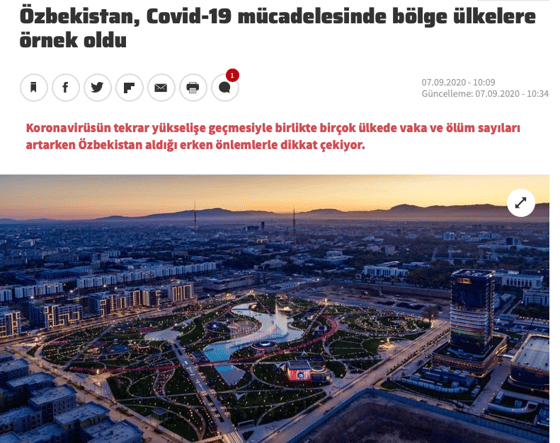 В материале издания отмечается, что достижения страны отличаются от достижений других стран региона, указывается на низкое число новых случаев заражения и смертей, а также на возросшее число выздоровевших. Также издание привело Узбекистан в качестве примера для других стран.