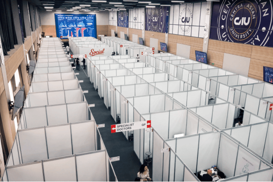 На территории кампуса Central Asian University развернута полноформатная модель диагностического центра, максимально приближенная к реальной клинике по логике работы, маршрутизации пациентов, распределению потоков и взаимодействию ключевых подразделений. Это не учебная концепция, а прототип будущей системы, которая сегодня находится в активной фазе разработки.