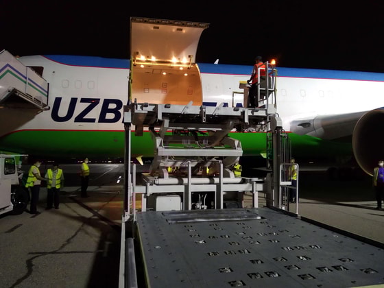 Для успешной транспортировки всего товара международный аэропорт снабдили необходимым оборудованием. Так, в Фергану доставили европоддоны из Ташкентского международного аэропорта.