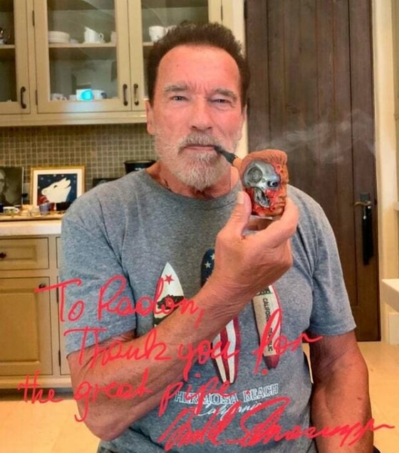 30 июля Арнольд Шварценеггер отметил свое 73-летие. К этой дате один из пользователей Reddit под ником RadonLab вырезал курительную трубку в виде головы Терминатора. В итоге работа пользователя дошла до актера. Сам Шварценеггер с 2012 года сидит на Reddit, где постоянно делает посты и общается с фанатами. Актер увидел работу RadonLab и оставил под постом комментарий.