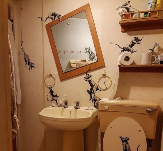 Британский художник Бэнкси представил новую работу на тему самоизоляции. На ней изображены крысы, которые устроили беспорядок в ванной комнате.
