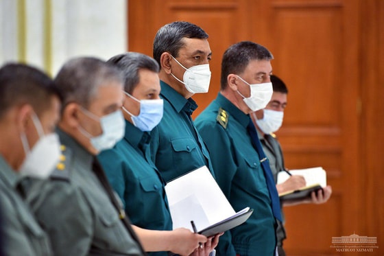 Шавкат Мирзиёев 27 июля впервые выступил на публике с медицинской маской. Президент ознакомился с отчетом о проводимой работе по противодействию пандемии коронавируса в Ташкенте, повышению эффективности борьбы с распространением инфекции, увеличению охвата населения качественной и своевременной медицинской помощью, сообщает пресс-служба главы государства.