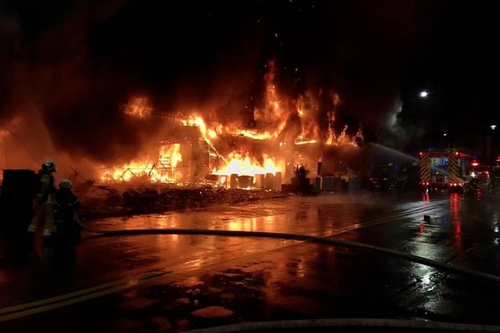 Жилое и коммерческое здание в городе Гаосюн загорелось рано утром в четверг 14 октября. Пожарным потребовалось более четырех часов, чтобы потушить пламя.