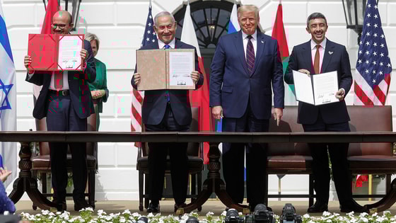 На этом мероприятии при посредничестве США премьер-министр Израиля Биньямин Нетаньяху подписал соответствующие соглашения с министрами иностранных дел ОАЭ и Бахрейна – Абдуллой бин Зайедом аль-Нахайяном и Абдуллатифом бин Рашидом аз-Заяни. Формально соглашение называется Авраамским договором.