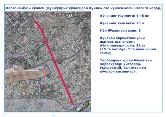 7. Улица Фарғона йўли (улица Қўшкўприк – пересечение улицы Қўйлиқ ота);