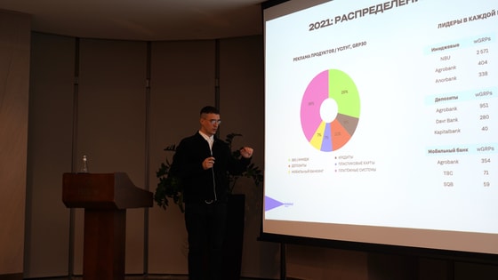 После Александра Дегтярева выступил с презентацией медиа-директор Ledokol Group Игнат Акрамов. В ходе неё он поделился данными медиа- рынка.