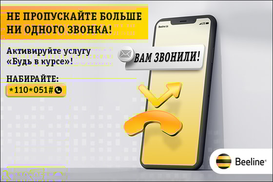 Beeline понимает, как важен каждый звонок и поэтому решил порадовать своих абонентов, сделав приятный сюрприз в Новый год. Поэтому, начиная с 4 января 2021 года услуга «Будь в курсе» будет предоставляться для всех абонентов Beeline Uzbekistan в рамках тарифных планов, без взимания отдельной платы!