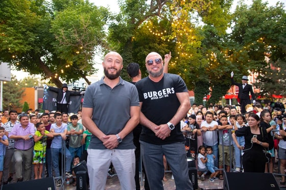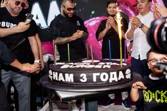 Мероприятие началось с благодарственной речи генерального директора Black Star Burger Юрия Левитаса и владельца узбекской франшизы Абдурашида Иминова. Они поблагодарили своих партнеров, а затем угостили всех гостей фирменными бургерами.